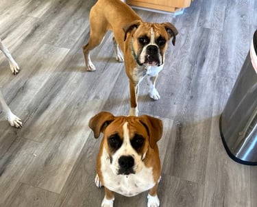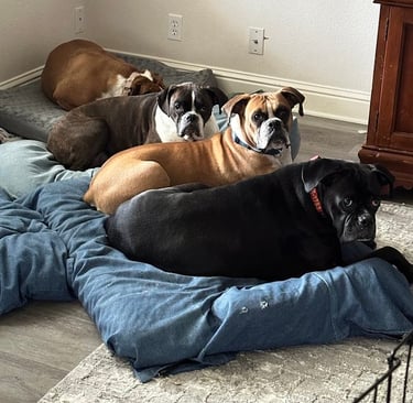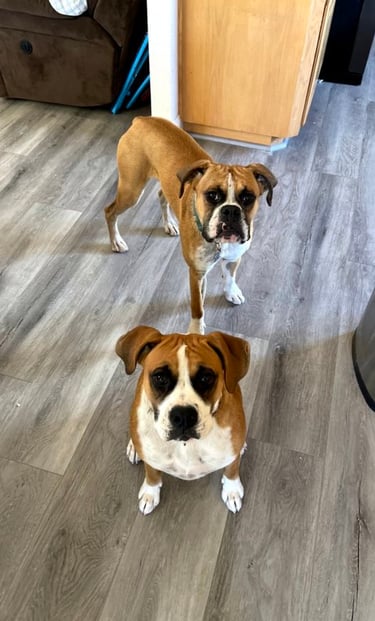 After we lost Momma Lucy, we wanted to find another male boxer. I found Levi in San Jose and his sister also needed a home so Lexi came with him.