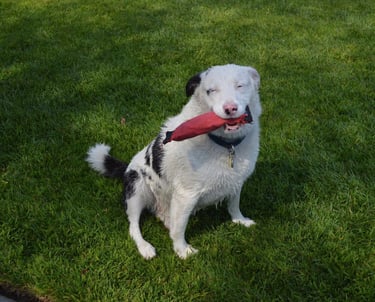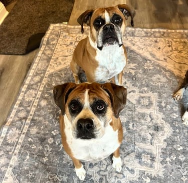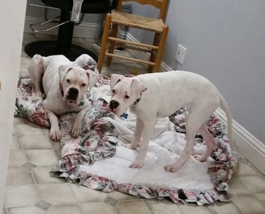 No, you're not experiencing double vision. This is Lucy and her baby, Izzy. They were in the Red Bluff Animal Shelter. Momma Lucy was very scared but desperately wanted to trust people. Both deaf, their lives on the streets were likely filled with scary times. Lucy was afraid of hoses, brooms, vacuums, anything that came near her. She also didn't let anyone get behind her. It was about a year before she made the gesture that showed me she finally trusted me. She walked toward me, turned around and sat at me feet, with her back to me. I cried like a baby.